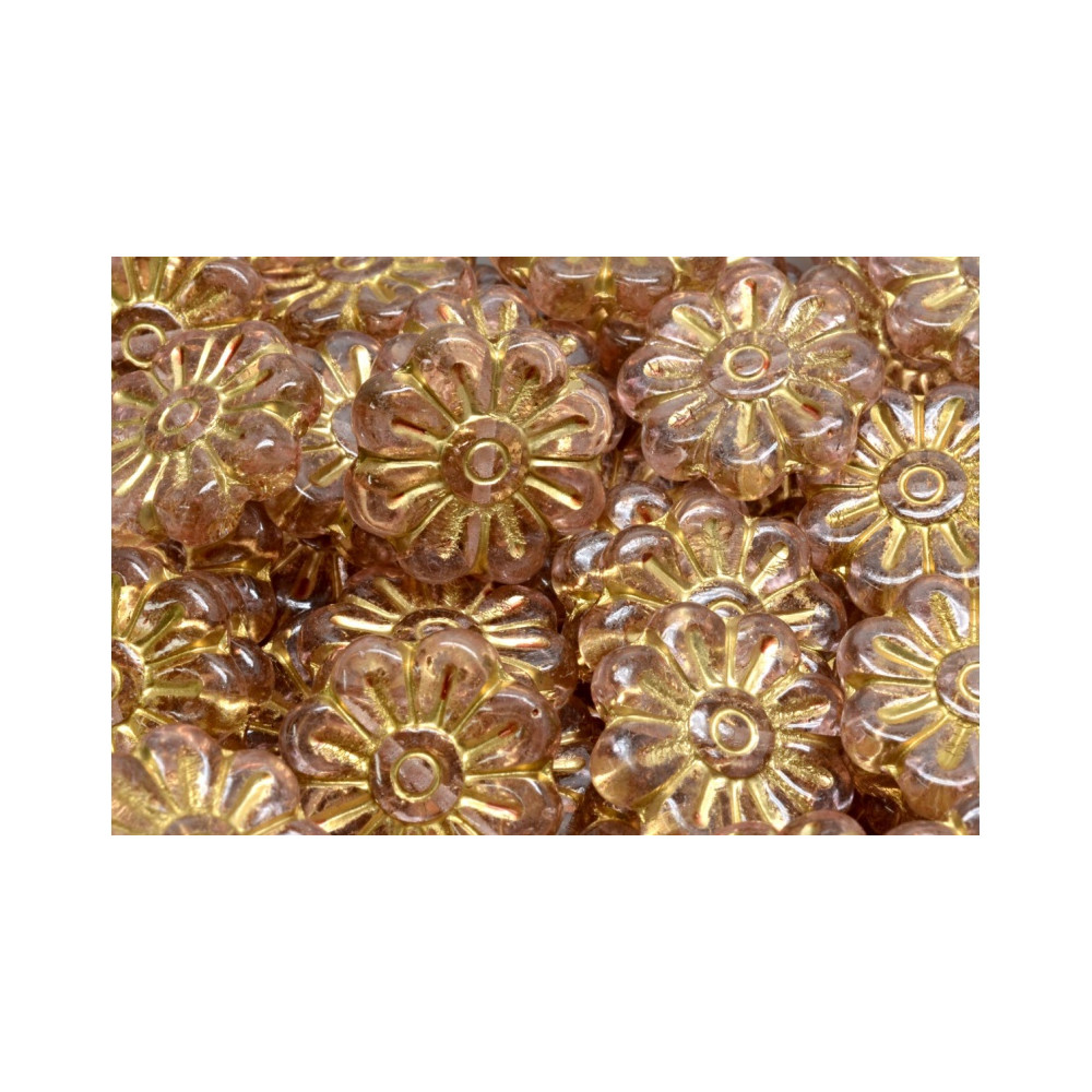 Broskvově růžový odstín s luxusním zlatým dekorem definuje tyto mačkané skleněné korálky ve tvaru kopretiny, které pocházejí z tradiční české dílny Rutkovsky. Na rozdíl od běžných plochých kytiček disponují tyto Boho Flower Beads hlubokým reliéfem, v němž dokonale vyniká kontrastní pokvov, což jim dodává starožitný nádech. Pokud při tvoření hledáte dominantní prvek, který udrží tvar a barvu i při každodenním nošení, je tento rozměr 18 x 18 mm ideální volbou pro středové části náhrdelníků nebo výrazné náušnice.