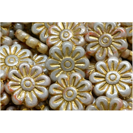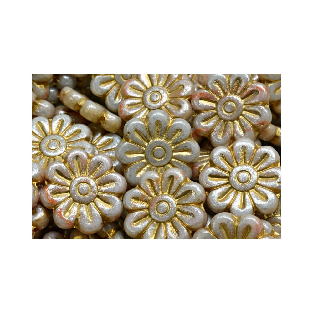 Mačkané skleněné korálky květ kopretiny 18 x 18mm Béžové