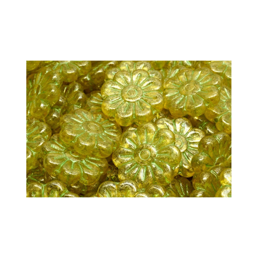 Mačkané skleněné korálky květ kopretiny 18 x 18mm Zelené