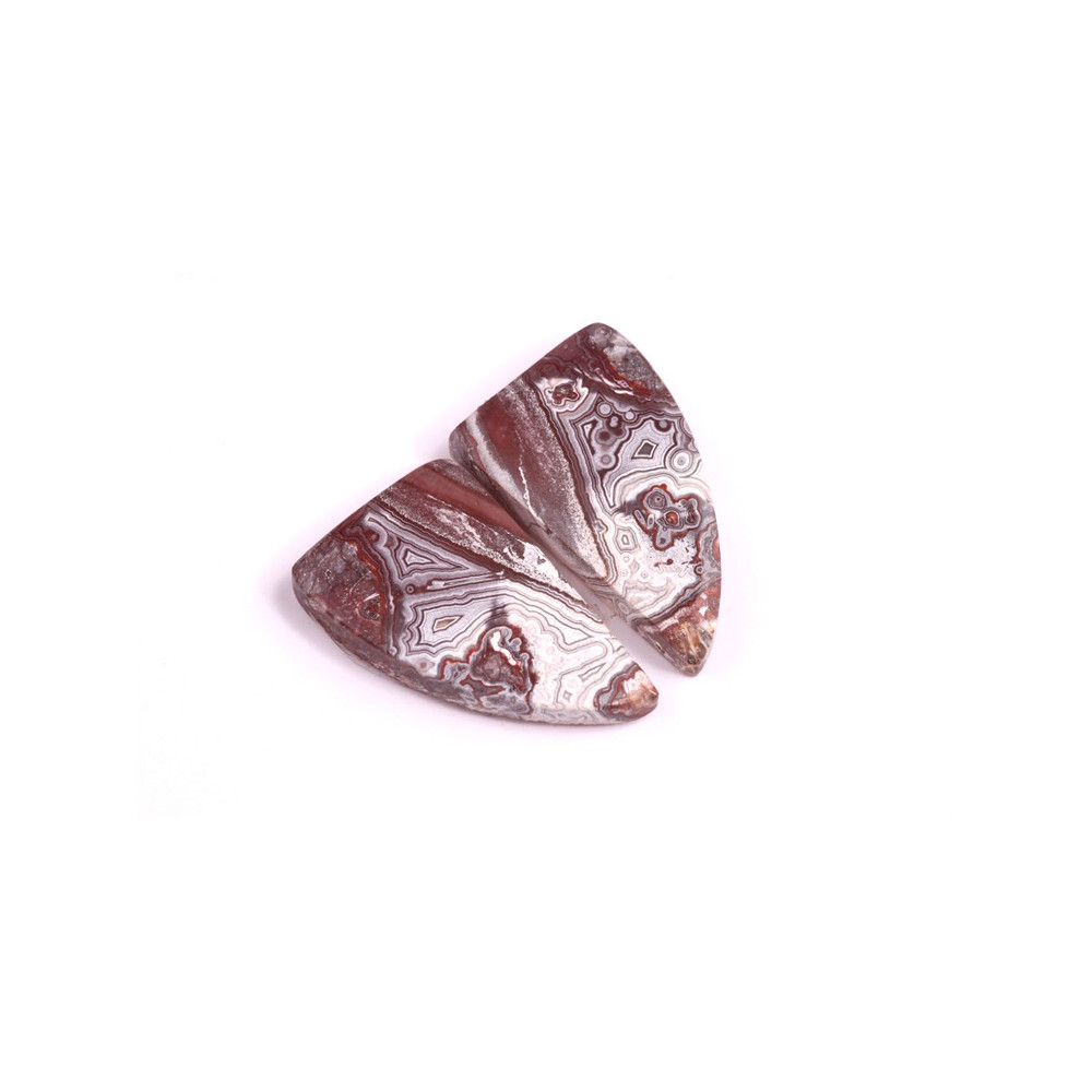 Párové kabošony z přírodního kamene Lace Agate (krajkový achát) přinášejí do šperků fascinující strukturu a barvy, které jsou typické pro tento jedinečný minerál. Každý pár kabošonů byl vytvořen z jednoho kusu kamene, aby perfektně ladily k sobě a tvořily harmonický celek – ideální pro výrobu náušnic. Lace Agate, se svými spletitými vzory a teplými tóny, nabízí výrazný a přitom elegantní vzhled, který přitahuje pozornost svou originalitou.