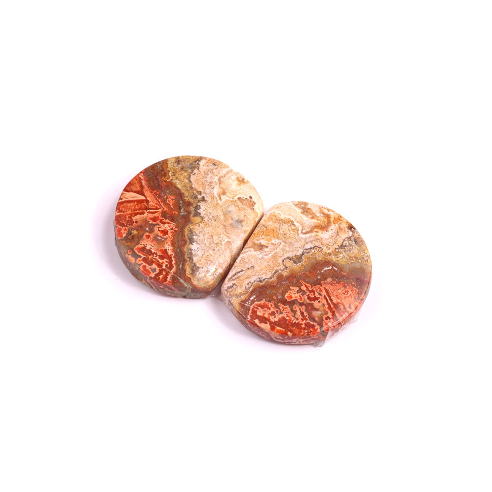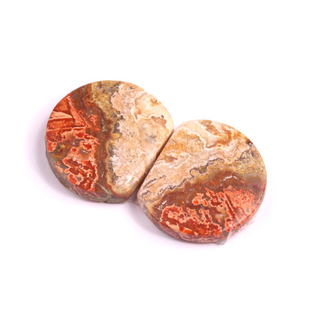 Párové kabošony z přírodního kamene Lace Agate (krajkový achát) přinášejí do šperků fascinující strukturu a barvy, které jsou typické pro tento jedinečný minerál. Každý pár kabošonů byl vytvořen z jednoho kusu kamene, aby perfektně ladily k sobě a tvořily harmonický celek – ideální pro výrobu náušnic. Lace Agate, se svými spletitými vzory a teplými tóny, nabízí výrazný a přitom elegantní vzhled, který přitahuje pozornost svou originalitou.