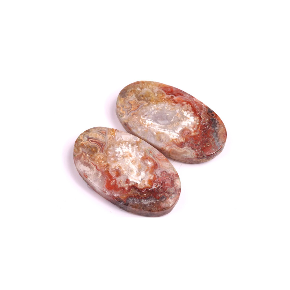 Párové kabošony z přírodního kamene Lace Agate (krajkový achát)