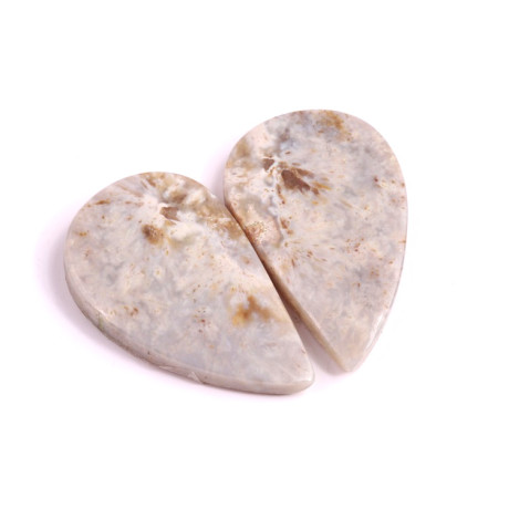 Tyto párové kabošony jsou ideální pro náušnice, kde vynikne jejich jemný krajkový vzor. Mohou být krásně obšity korálky, což dodá náušnicím další texturu a zvýrazní jejich unikátní vzory. Pro zvýšení elegance lze Lace Agate nalepit na filc, který poslouží jako základ pro korálkovou výšivku, nebo je obcínovat či obdrátkovat do kovu, jako je měď nebo stříbro, což umocní jejich zemitý a elegantní vzhled.