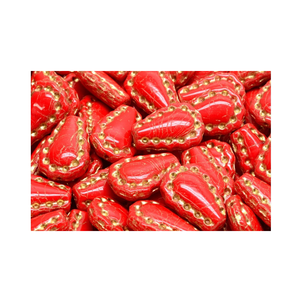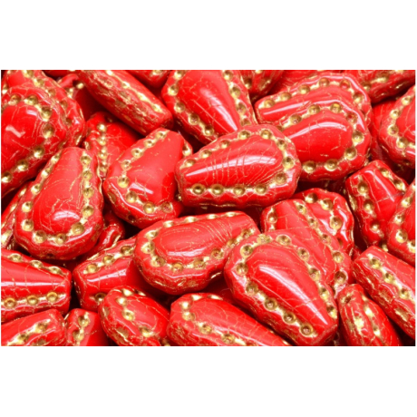 Lacy Tear Beads Velikost cca 17X12 mmVelikost průtahu: 1,0 mm caBalení: 6 KsBarva: RUBY/GOLD...