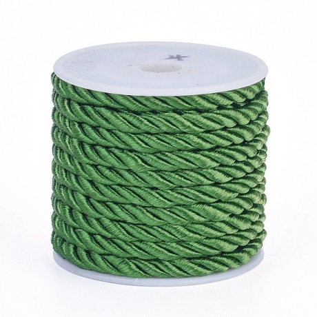 Kroucená šňůra silná 5mm Průměr: 5 mm Balení: 1 metr Barva: zelená Materiál: polyester Průřez:...