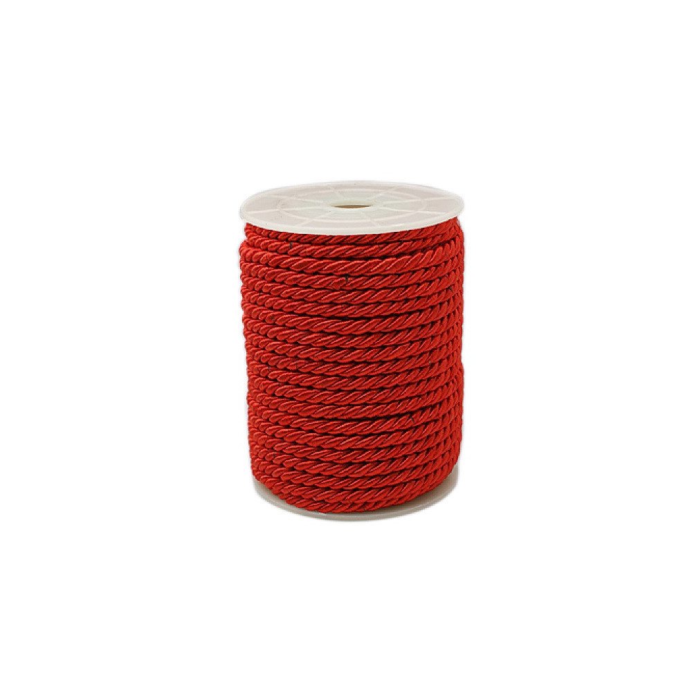 Kroucená šňůra silná 5mm Průměr: 5 mm Balení: 1 metr Barva: červená Materiál: polyester Průřez:...