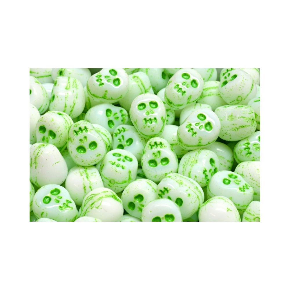 Skull Beads Velikost cca 12X12 mmVelikost průtahu: 1,0 mm caBalení: 4 KsBarva: ALABASTER GREEN...