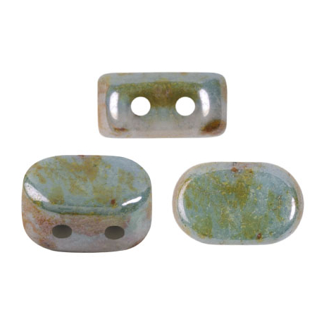 Skleněné mačkané korálky Lipsi® par Puca® - Paris 7 x 4 mm OPAQUE GREEN TURQUOISE BRONZE...
