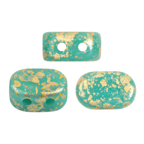 Představte si náhrdelník, který v sobě nese barvy tropického moře se zlatavými odlesky slunce na hladině. Tyto dvoudírkové korálky Lipsi® par Puca® v podmanivém odstínu Opaque Green Turquoise Splash přinášejí do vaší tvorby eleganci francouzské riviéry, podtrženou mistrovským zpracováním českého skla. Jejich jemně zaoblený obdélníkový tvar o velikosti 7 x 4 mm a lesklý povrch s efektem zlatých cákanců z nich činí ideální prvek pro luxusní šperky, které přitahují pohled při každém pohybu.