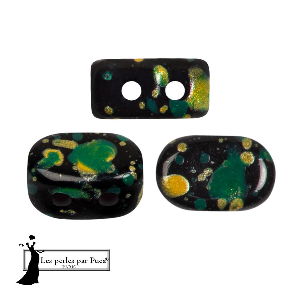 Lipsi® par Puca® v odstínu Enamel Green s kódem barvy 23980/94604 představují fascinující spojení hlubokého tmavého základu a svěžích zelených akcentů se zlatavými odlesky. Tyto mačkané korálky o rozměru 7 x 4 mm vynikají svým specifickým zaobleným tvarem a dvěma otvory, které umožňují vytvářet složité geometrické vzory a pevné struktury v bižuterii.