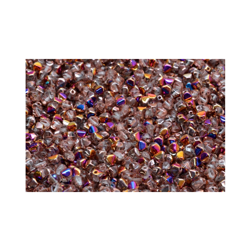 Růžový základ s fascinujícím kovovým odleskem definuje tyto precizně tvarované Lantern & Spinner Beads. Duhová povrchová úprava na jedné straně korálku vytváří dynamickou hru barev od modré po zlatou, což dodá vašim projektům hloubku a luxusní vzhled.