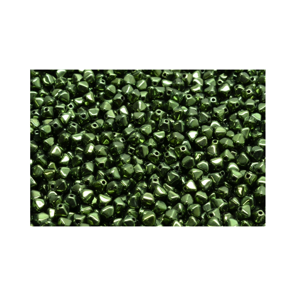 Metalický povrch v kombinaci s tmavě zeleným základem vytváří fascinující hru světla a stínu při každém pohybu. Zelená barva s kódem 23980-14495 je nadčasová a evokuje eleganci drahých kamenů, což tyto české korálky předurčuje k tvorbě večerních setů i jemných denních ozdob. Originální tvary z rodinné dílny Rutkovsky umožňují designérům experimentovat s texturou a objemem šperku.