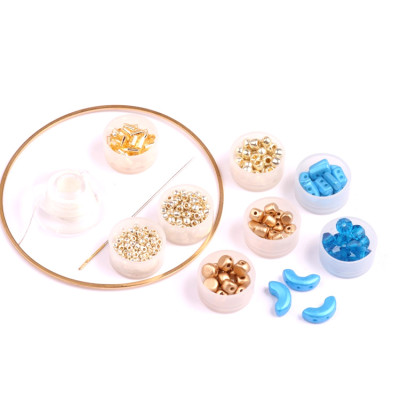 Kombinace těchto drobných prvků a techniky šitého šperku nabízí nekonečné možnosti, jak vytvořit originální náhrdelníky, kde skvěle vynikne drobný rokajl Preciosa jako propojovací prvek mezi jednotlivými kousky. Díky středovému průtahu 0,8 mm se s nimi snadno pracuje při tvorbě víceřadých náramků nebo náušnic, které vyžadují precizní geometrické uspořádání a jedinečné formy korálků.