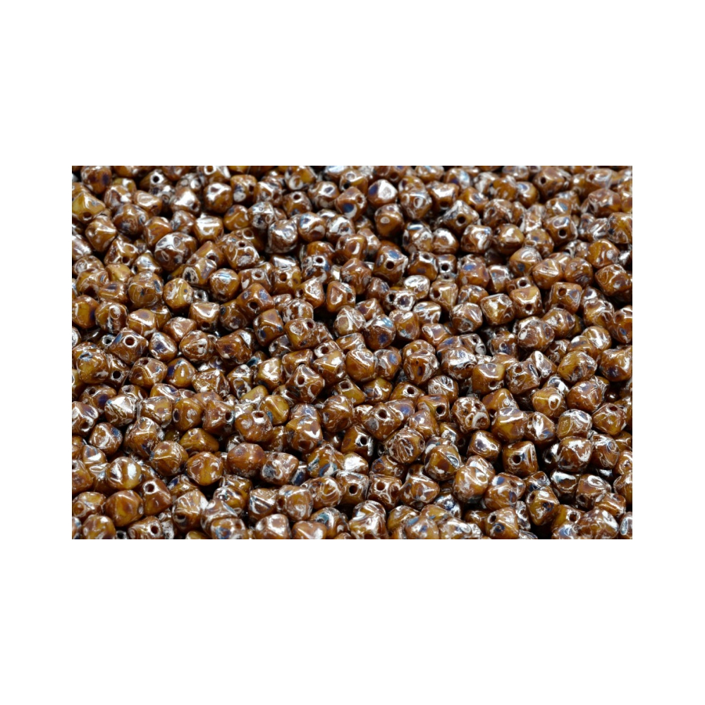 Pokud hledáte materiál pro tvorbu etno doplňků nebo šperků v boho stylu, tato hnědá varianta s povrchovou úpravou Picasso je trefou do černého. Co mě na nich nejvíce baví, je jejich nepravidelné žíhání, díky kterému vypadá každý jednotlivý korálek jako unikátní přírodní kámen. Jsou vyráběny v České republice rodinnou firmou, která si zakládá na precizní ruční výrobě a jedinečných formách.