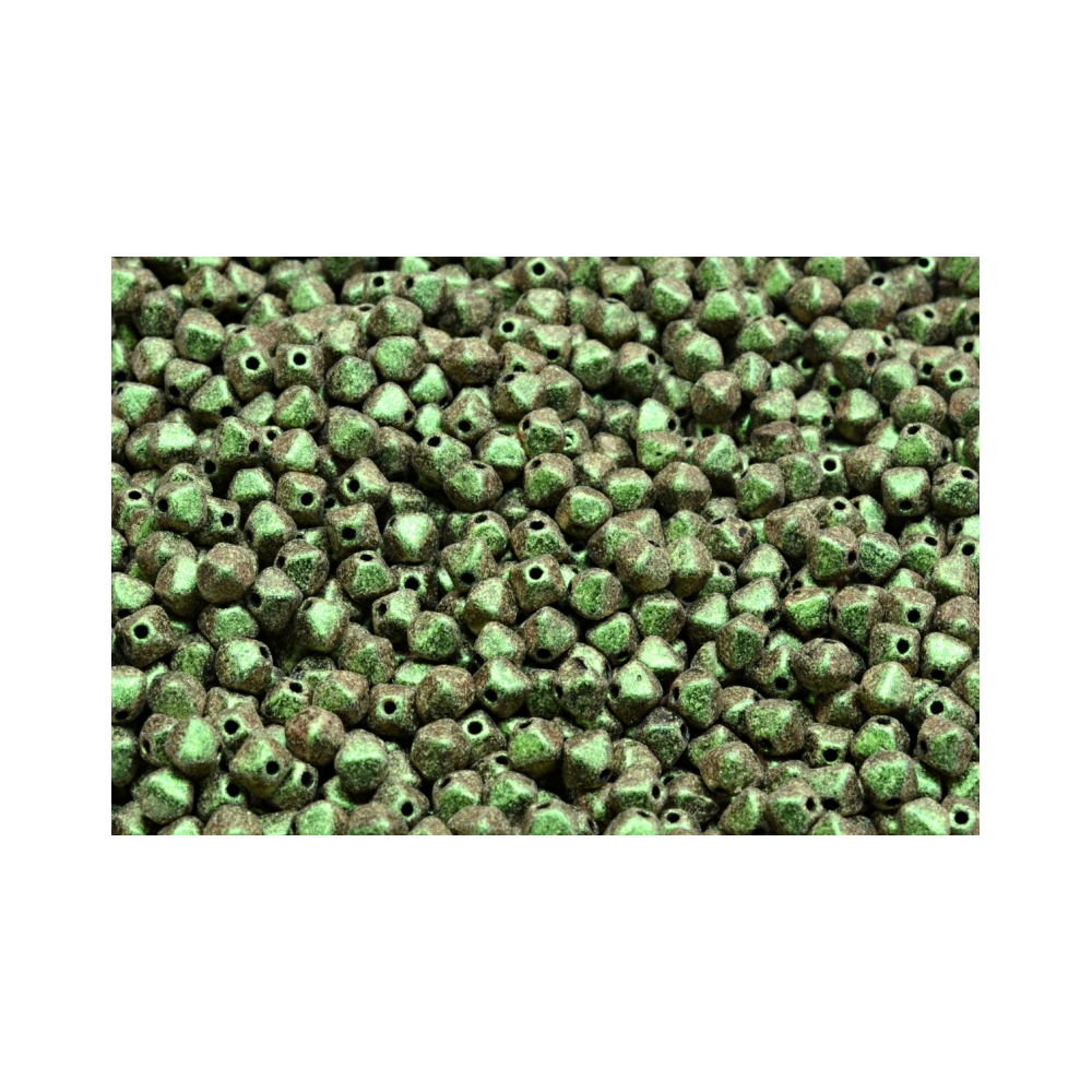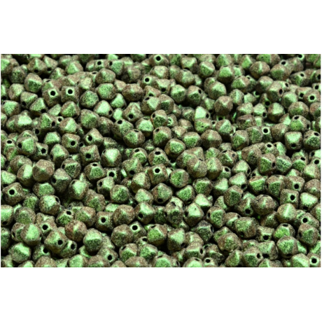 Kombinace přírodního zeleného odstínu a bronzové patiny skvěle doplňuje aktuální trend earthy jewelry a boho stylu. Při výrobě šperků oceníte zejména jejich univerzálnost, kdy v kombinaci s rokajlem Preciosa velikosti 10/0 nebo 8/0 vytvoříte luxusní textury v náramcích i náhrdelnících. Povrchová úprava typu Picasso připomínající přírodní kámen dodává každému designu hloubku a žádaný historický nádech.