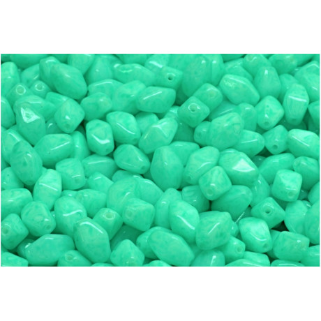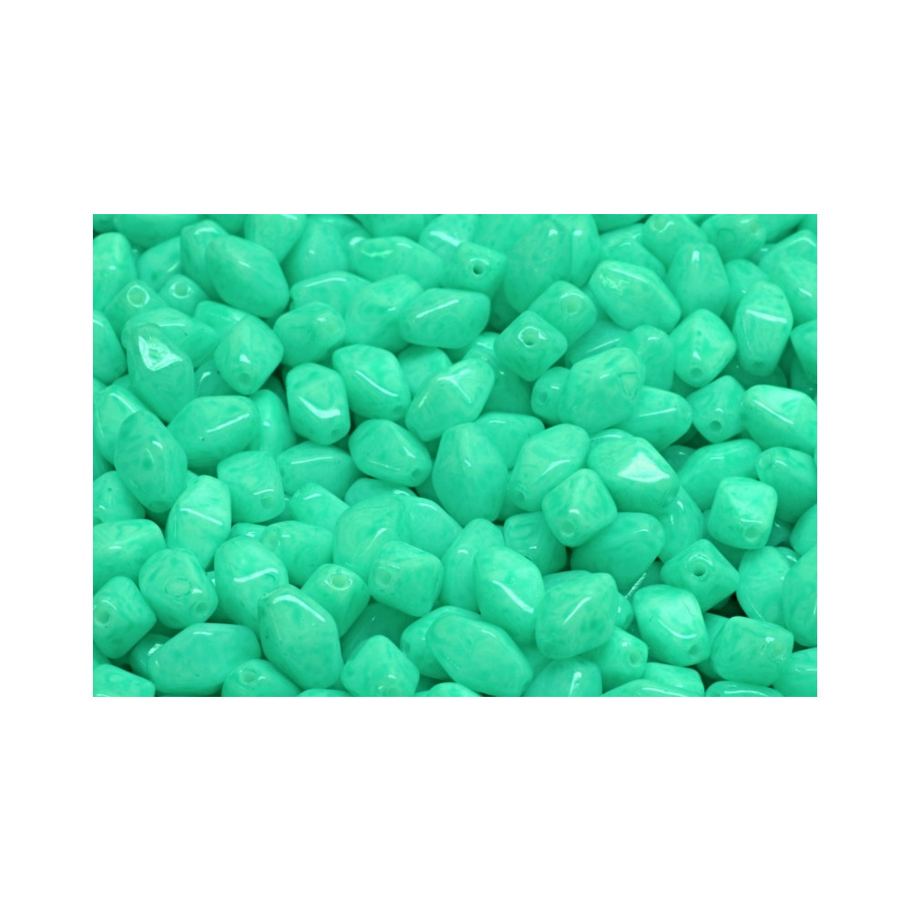 Mentolová barva a protáhlý tvar charakterizují tyto skleněné korálky od rodinné firmy Rutkovský. Každý kus představuje tradiční české sklářství a precizní ruční výrobu. Tvar Lantern & Spinner Beads (v češtině známý jako Lucerny, Spinner) o rozměru 8 x 6 mm dodává šperkům unikátní geometrický prvek.