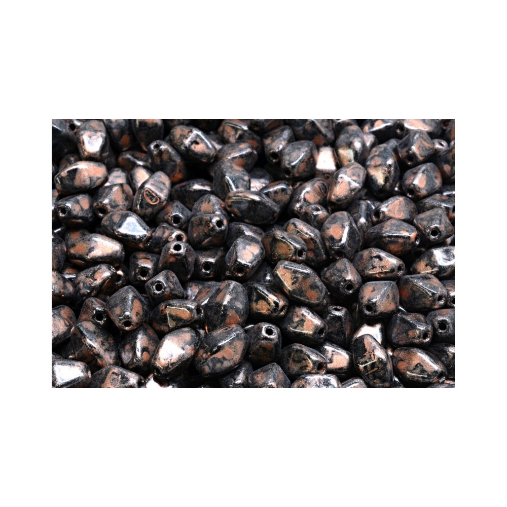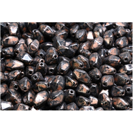 Měděné odlesky na sytě černém základu těchto korálků typu Lantern & Spinner Beads vyprávějí příběh o mistrovství rodinné firmy Rutkovský. V severočeském Křišťálovém údolí vznikají tyto ručně mačkané skleněné korálky tradičními postupy, které se dědí z generace na generaci, čímž si zachovávají svou jedinečnou duši a vysokou kvalitu. Každý kus o rozměru 8 x 6 mm nese stopy precizního řemesla a unikátní povrchovou úpravu, která dodá vašim autorským šperkům punc luxusu a historické autenticity českého sklářství.