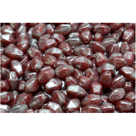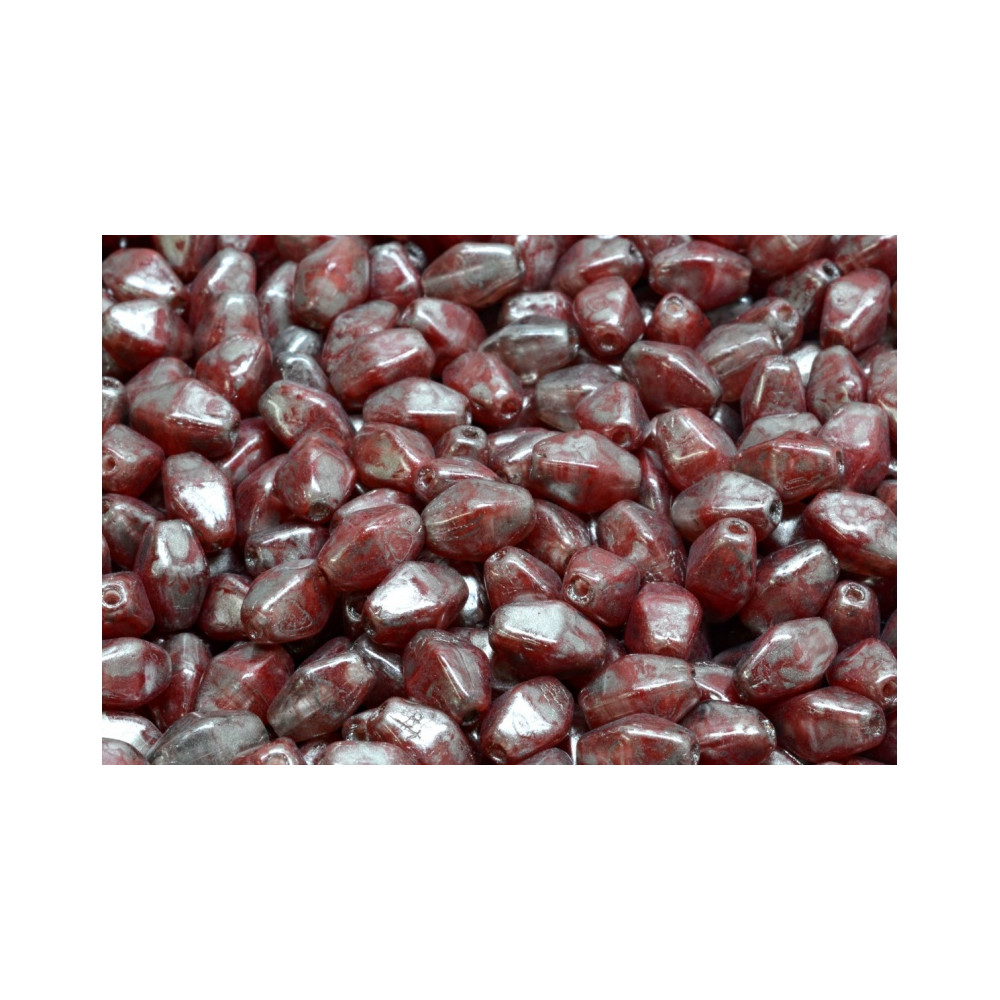 Hluboké vínový tóny v kombinaci s výraznou stříbřitou patinou definují charakter těchto Lantern & Spinner Beads o rozměru 8 x 6 mm. Každý kus pochází z dílny rodinného výrobce Rutkovský, kde se tradiční české sklářství snoubí s precizní ruční výrobou mačkaných korálků. Tyto skleněné korálky vynikají svou specifickou texturou, která na povrchu vytváří unikátní vzory, díky čemuž je každý hotový šperk naprostým originálem.