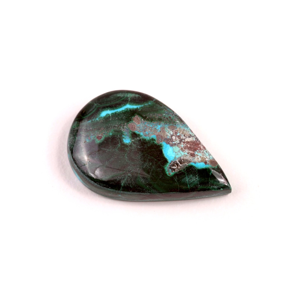 Kabošon z přírodního Malachite Chrysocolla je skutečným skvostem, který uchvátí každého milovníka šperkového designu. Sytě zelený malachit v harmonickém spojení s zářivou modrou chryzokolou tvoří jedinečnou paletu barev, která zaručeně ozvláštní každou šperkovou kolekci. Každý kabošon je originální, neboť jeho kresba a struktura se liší od kusu k kusu, což znamená, že do vaší sbírky přidáte skutečný přírodní unikát.