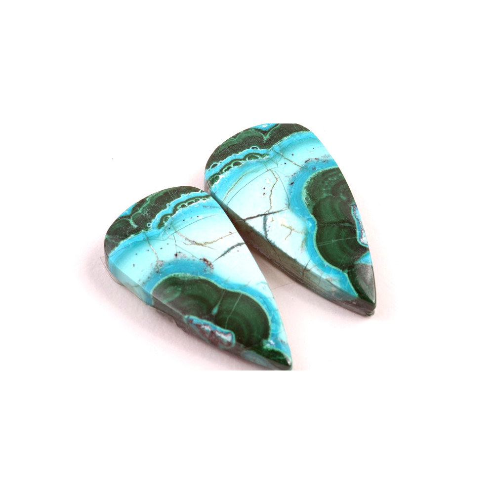 Párové kabošony z přírodního kamene Malachit Chrysocolla (Congo)