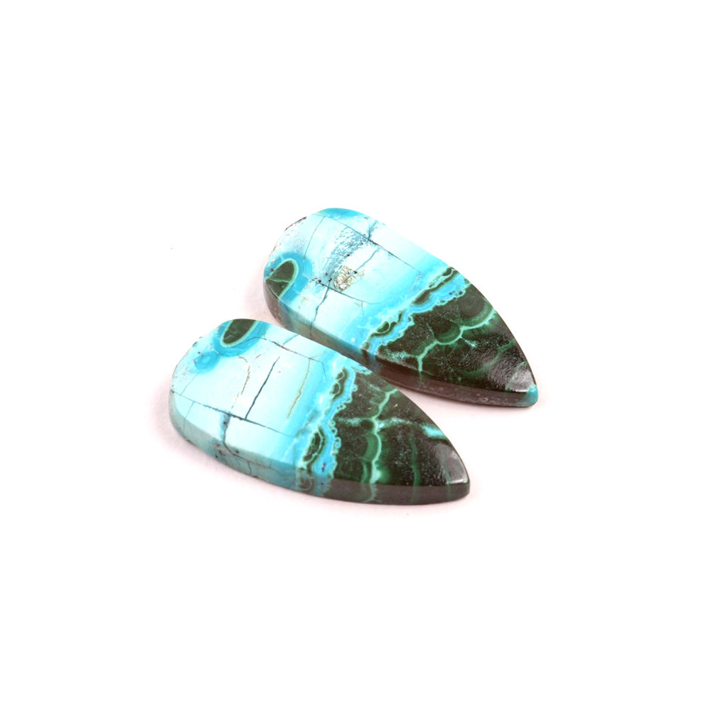 Párové kabošony z přírodního kamene Malachit Chrysocolla (Congo)