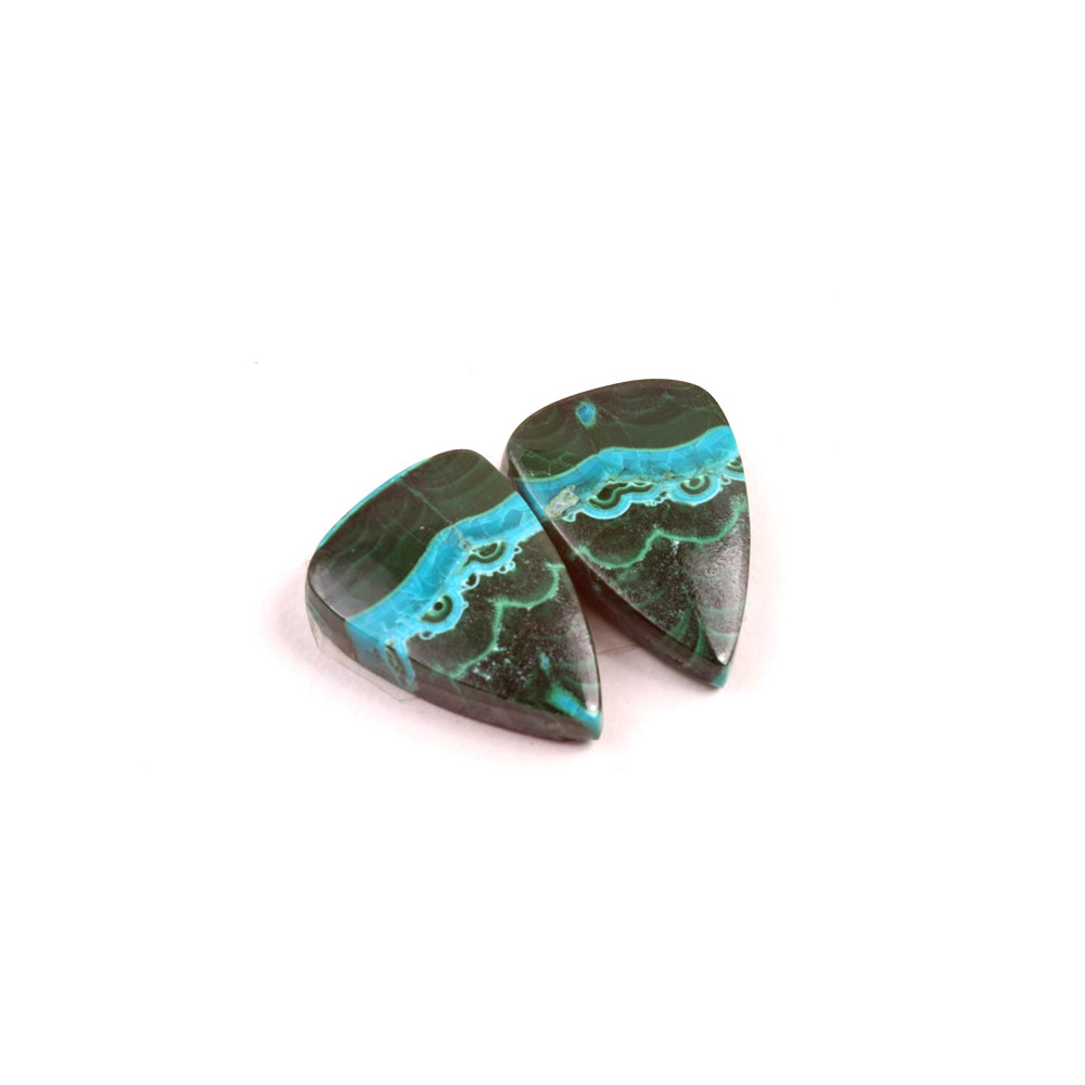 Párové kabošony z přírodního kamene Malachit Chrysocolla (Congo)