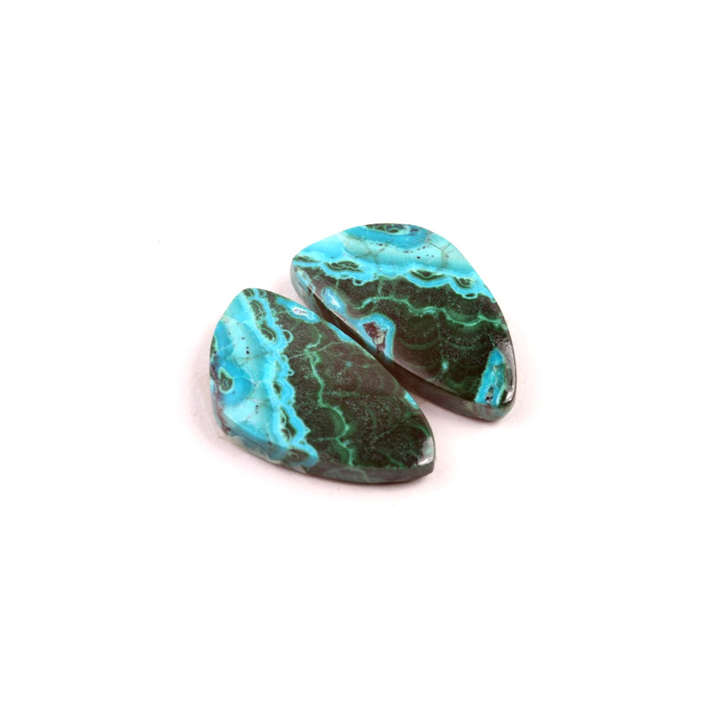 Párové kabošony z přírodního kamene Malachit Chrysocolla (Congo)