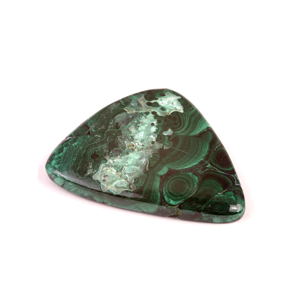 Kabošon z přírodního malachitu je skutečným skvostem mezi minerálními kameny. Jeho fascinující kresba, která se vyznačuje výraznými zelenými pruhy a vířivými vzory, vytváří unikátní texturu, jež okouzlí každého, kdo se na něj podívá. Tento kabošon je nejen krásný, ale také jedinečný – každý kus je originál, díky čemuž získáváte do svých projektů kousek přírody, který se nedá zkopírovat.
