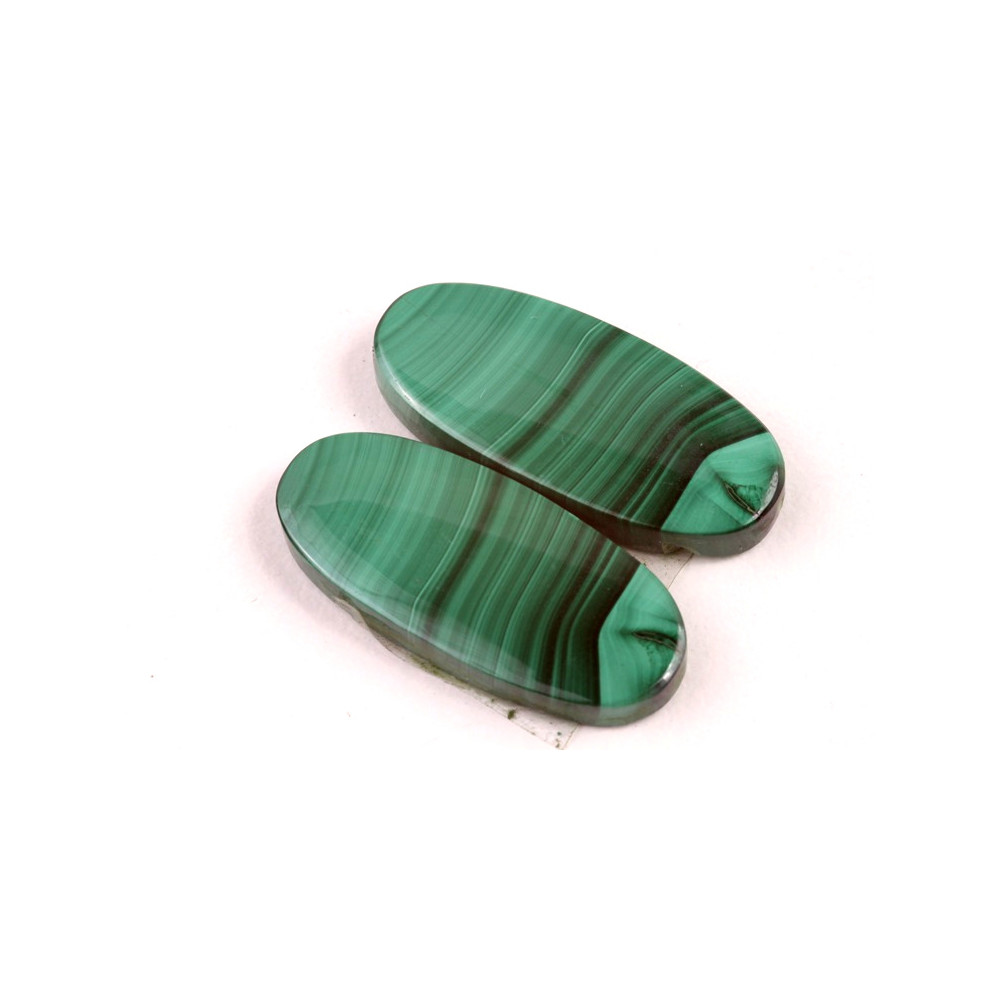 Párové kabošony z přírodního kamene Malachite (Afrika) Velikost jednoho kusu cca 28x15x4 mm...