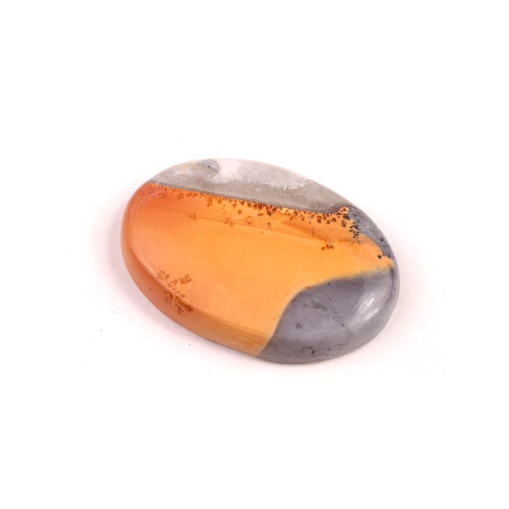 Kabošon z přírodního kamene Maligano Jasper je ohromujícím příkladem přírodní krásy. Tento jaspis pocházející z Indonésie vás uchvátí kontrastními tóny oranžové, šedé a krémové barvy s unikátními "ostrovy" a žilkami, které připomínají abstraktní krajiny. Jeho výrazná textura a bohaté barvy vnesou do každého šperku nádech originality a síly.