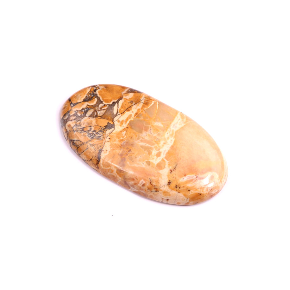 Kabošon z přírodního kamene Maligano Jasper je ohromujícím příkladem přírodní krásy. Tento jaspis pocházející z Indonésie vás uchvátí kontrastními tóny oranžové, šedé a krémové barvy s unikátními "ostrovy" a žilkami, které připomínají abstraktní krajiny. Jeho výrazná textura a bohaté barvy vnesou do každého šperku nádech originality a síly.