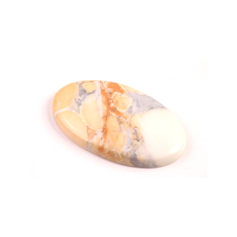 Kabošon z přírodního kamene Maligano Jasper je ohromujícím příkladem přírodní krásy. Tento jaspis pocházející z Indonésie vás uchvátí kontrastními tóny oranžové, šedé a krémové barvy s unikátními "ostrovy" a žilkami, které připomínají abstraktní krajiny. Jeho výrazná textura a bohaté barvy vnesou do každého šperku nádech originality a síly.