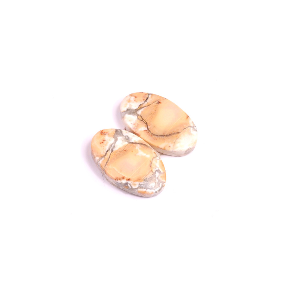Tyto párové kabošony byly vyrobeny z jednoho kusu kamene a pečlivě opracovány tak, aby jejich kresba ladila a tvořila harmonický pár. Jsou ideální volbou pro výrobu náušnic nebo symetrických šperků, kde je jejich přírodní krása vynikne naplno.