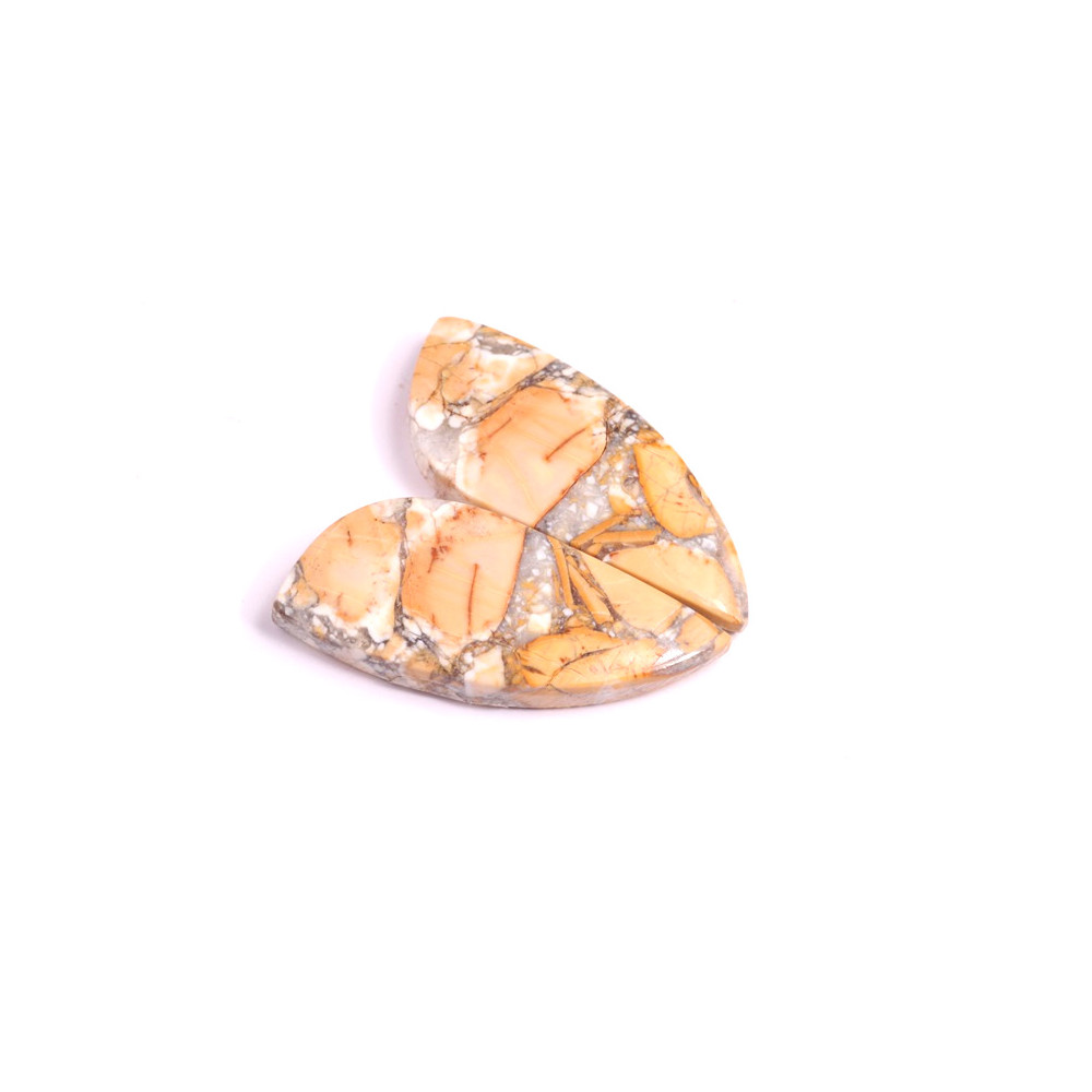 Tyto párové kabošony byly vyrobeny z jednoho kusu kamene a pečlivě opracovány tak, aby jejich kresba ladila a tvořila harmonický pár. Jsou ideální volbou pro výrobu náušnic nebo symetrických šperků, kde je jejich přírodní krása vynikne naplno.