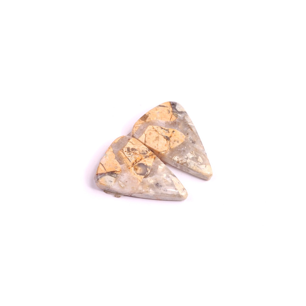 Tyto párové kabošony byly vyrobeny z jednoho kusu kamene a pečlivě opracovány tak, aby jejich kresba ladila a tvořila harmonický pár. Jsou ideální volbou pro výrobu náušnic nebo symetrických šperků, kde je jejich přírodní krása vynikne naplno.