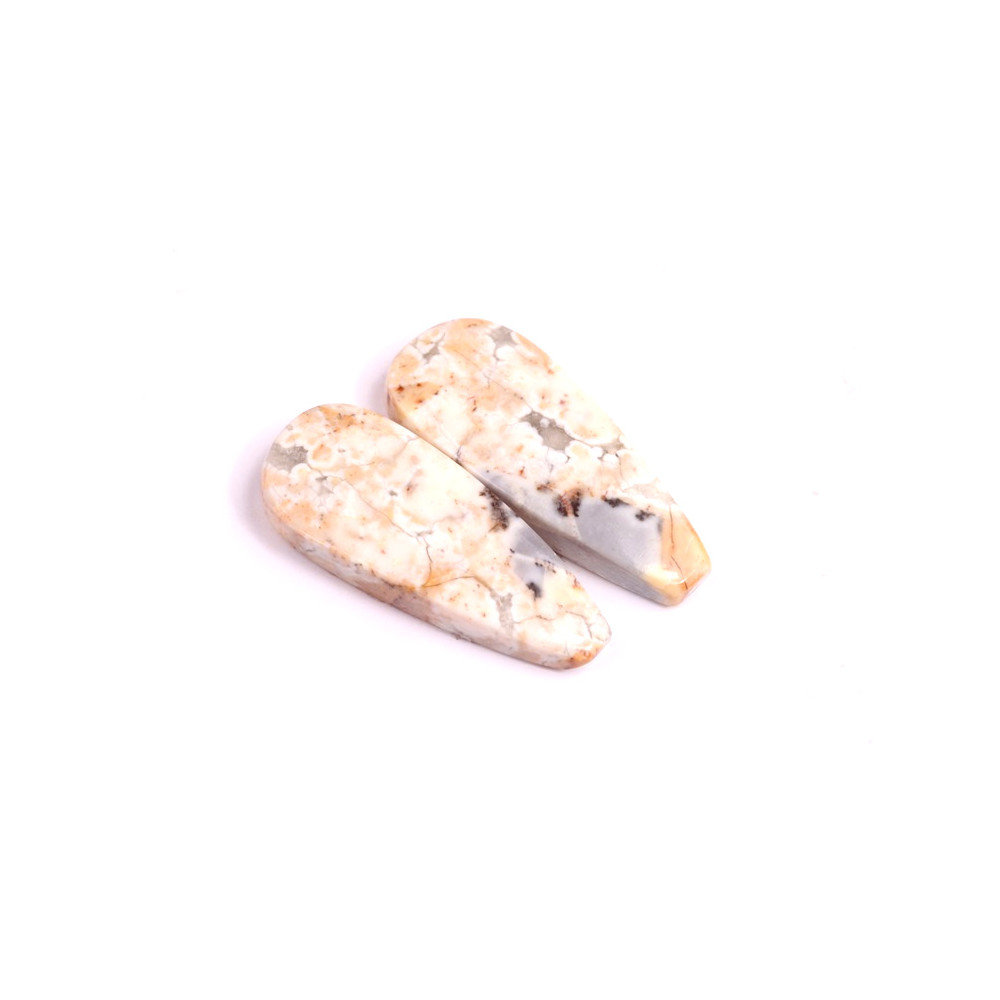 Tyto párové kabošony byly vyrobeny z jednoho kusu kamene a pečlivě opracovány tak, aby jejich kresba ladila a tvořila harmonický pár. Jsou ideální volbou pro výrobu náušnic nebo symetrických šperků, kde je jejich přírodní krása vynikne naplno.
