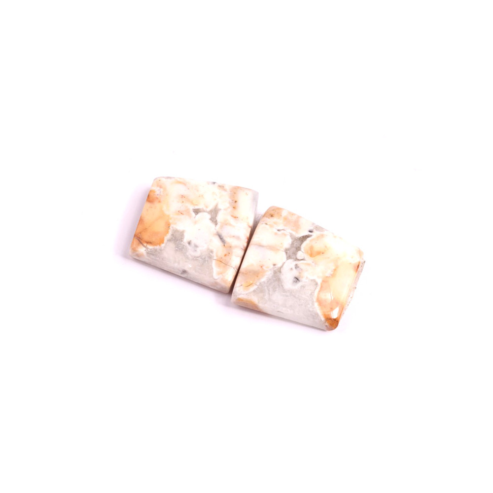 Tyto párové kabošony byly vyrobeny z jednoho kusu kamene a pečlivě opracovány tak, aby jejich kresba ladila a tvořila harmonický pár. Jsou ideální volbou pro výrobu náušnic nebo symetrických šperků, kde je jejich přírodní krása vynikne naplno.