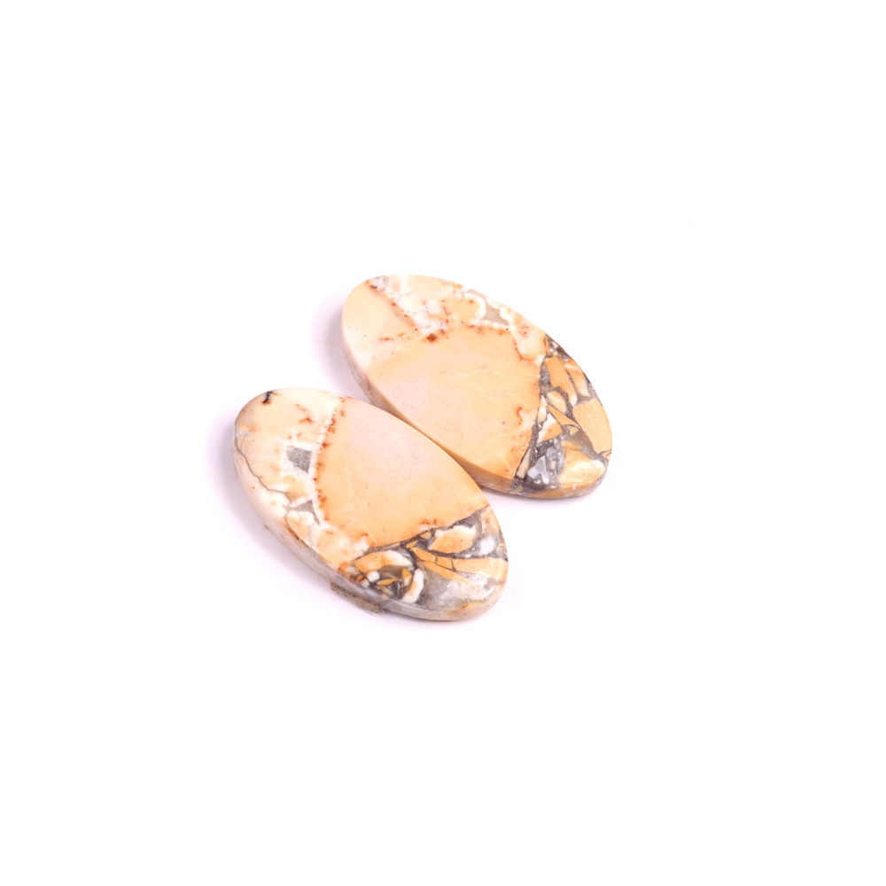 Tyto párové kabošony byly vyrobeny z jednoho kusu kamene a pečlivě opracovány tak, aby jejich kresba ladila a tvořila harmonický pár. Jsou ideální volbou pro výrobu náušnic nebo symetrických šperků, kde je jejich přírodní krása vynikne naplno.