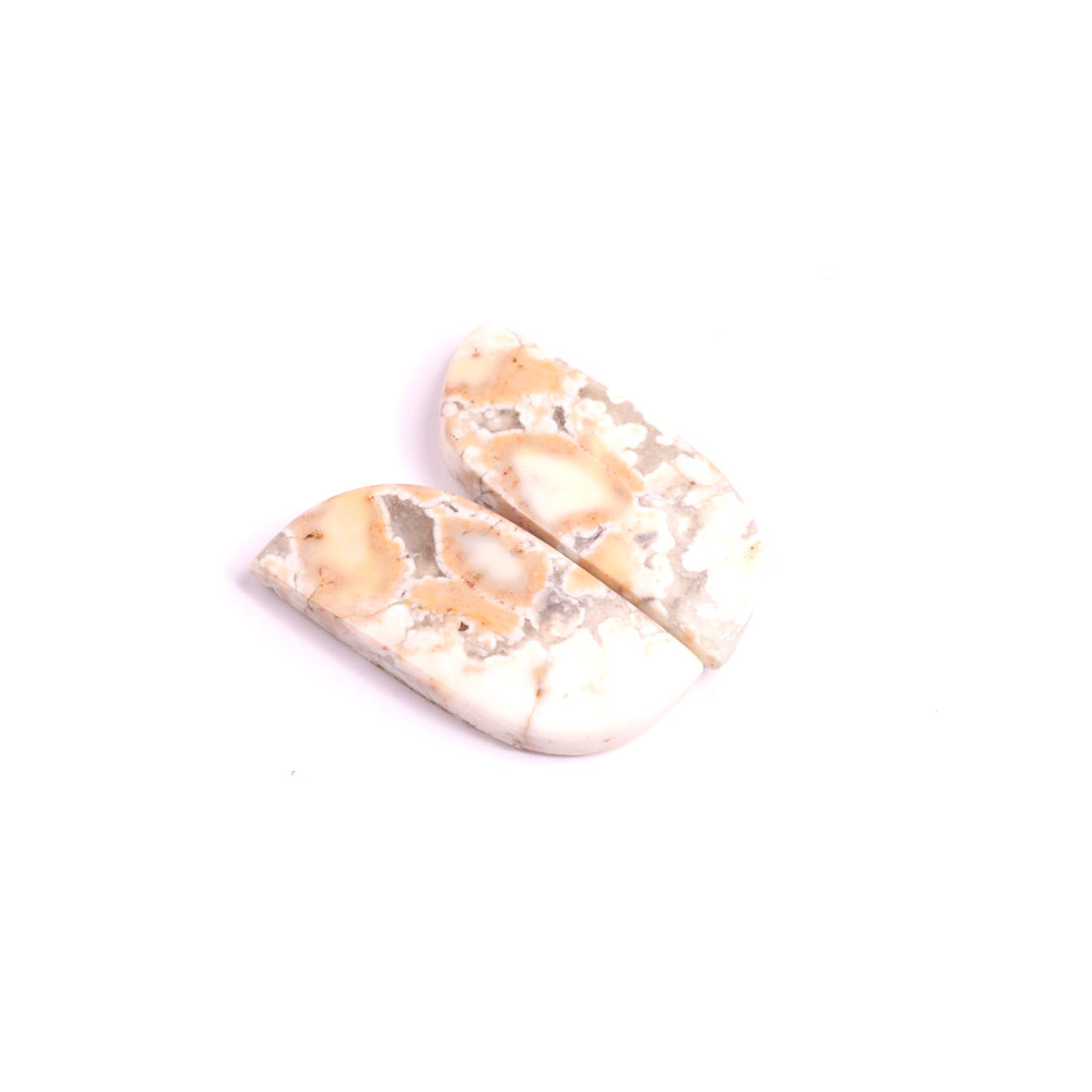 Tyto párové kabošony byly vyrobeny z jednoho kusu kamene a pečlivě opracovány tak, aby jejich kresba ladila a tvořila harmonický pár. Jsou ideální volbou pro výrobu náušnic nebo symetrických šperků, kde je jejich přírodní krása vynikne naplno.