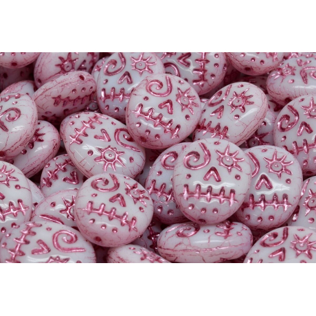 Růžové odlesky na bílém podkladu dělají z těchto skleněných korálků ve tvaru Maska (Mask Beads) naprostý unikát pro vaše tvoření. Tyto ručně mačkané korálky pocházejí z rodinné dílny Rutkovský, kde se snoubí tradiční české sklářství s moderním designem a rodinnou tradicí. Fascinuje mě, jak detailní je jejich povrchová úprava v balení 4 ks, která skvěle vynikne zejména v kombinaci s drobným rokajlem Preciosa ve velikosti 10/0, čímž vytvoříte šperky s nádechem etna nebo fantasy tématiky.