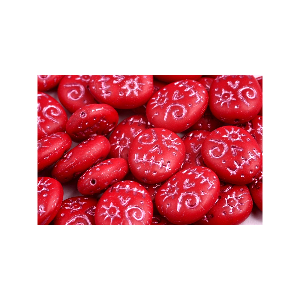 Sytě červená barva a hravý design charakterizují tyto ručně mačkané Mask Beads pocházející z Jizerských hor. Každý kus nese detailní motiv obličeje, který dodá vašim projektům špetku humoru i etnického tajemna. Tyto české skleněné korálky představují vrchol tradičního řemesla rodinné firmy Rutkovský.