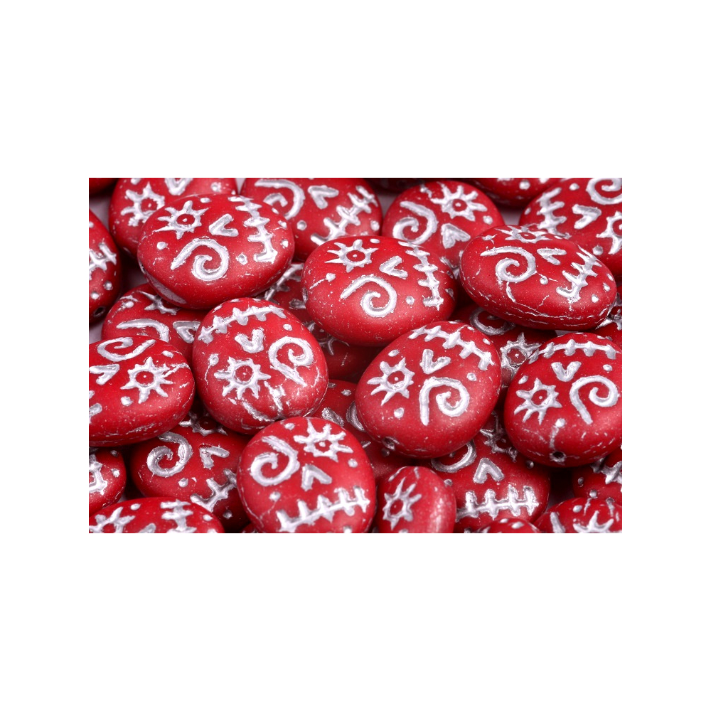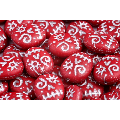 Sytě červená barva v kombinaci se stříbřitým zdobením vytváří z těchto skleněných korálků typu Mask Beads naprosto nepřehlédnutelný prvek pro vaši tvorbu. Každý kus nese unikátní detail ručně mačkaného skla, který v sobě odráží tradiční české sklářství a rodinnou péči firmy Rutkovský. Tyto české korálky s motivem masky o rozměru 16 x 13 mm dodají vašim šperkům nádech mystiky a etnického stylu.