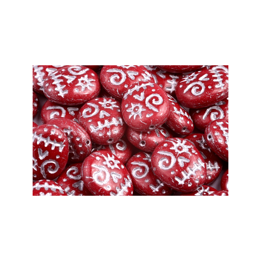 Červená barva s jemnou stříbřitou patinou zdobí tyto ručně mačkané skleněné korálky, které vznikají v srdci severních Čech pod rukama mistrů z rodinné firmy Rutkovský. Unikátní tvar Mask Beads (Maska) o rozměru 16 x 13 mm nese odkaz na tradiční české sklářství a precizní řemeslo, díky čemuž je každý kus originálem. Tyto červené korálky s kódem 93110-84100-54301 vynikají hloubkou barev a detailním reliéfem, který vdechne vašim šperkům nezaměnitelný charakter a uměleckou hodnotu.