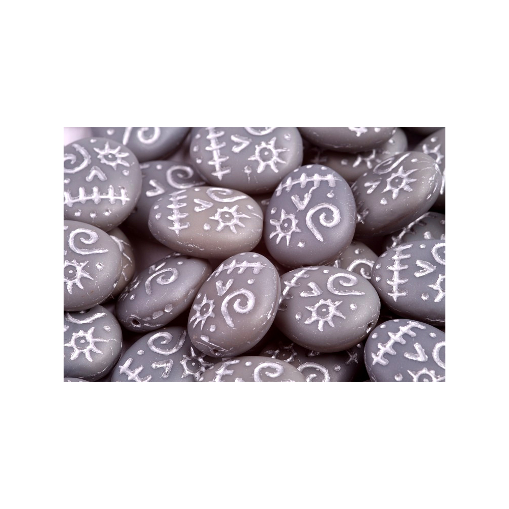 Šedý podklad s jemným stříbřitým efektem v prohlubních definuje tyto ručně mačkané skleněné korálky o rozměru 16 x 13 mm, které pocházejí z rodinné mačkárny Rutkovský. Průtah o průměru 0,8 mm je precizně vycentrován, což zaručuje bezproblémové navlékání na běžné bižuterní dráty i pevnější nitě při tvorbě náročnějších projektů vyžadujících stabilitu tvaru. Tradiční české sklářství se zde projevuje v dokonalém opracování hran, díky čemuž korálky netrhají návlekový materiál a v designu působí profesionálně.