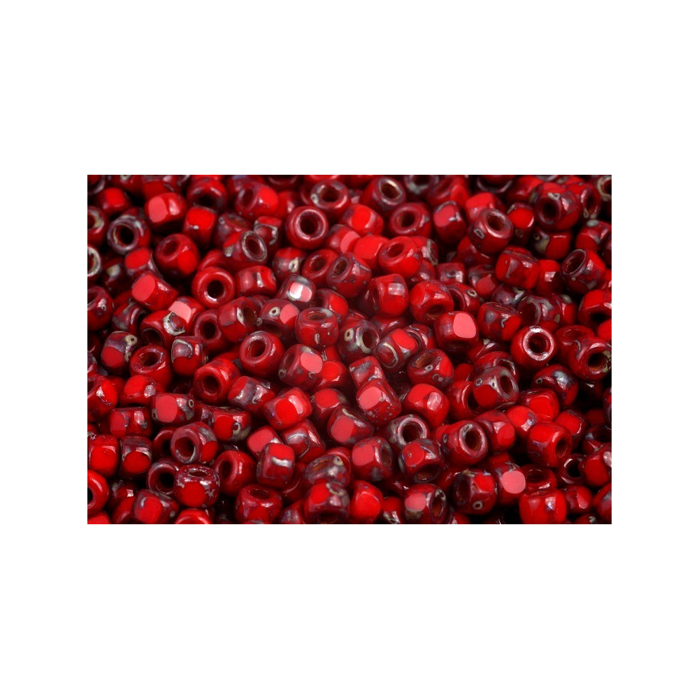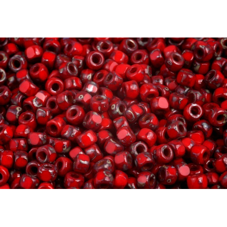 Matubo 3 CUT 6/0 OPAQUE CORAL RED TRAVERTIN DARK 93200/86805
