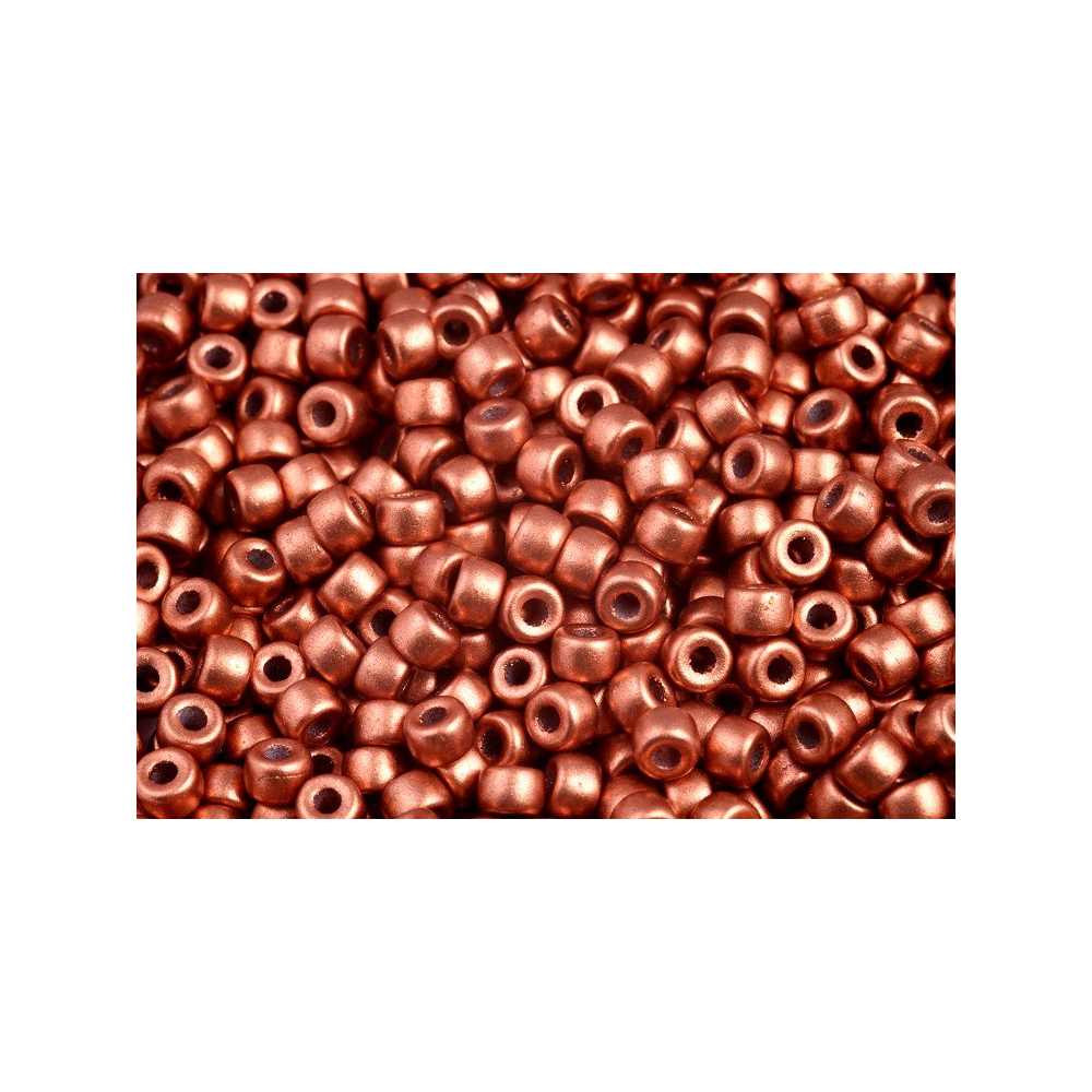 Měděná barva s označením CRYSTAL BRONZE VINTAGE COPPER (kód 00030/01770) dodává šperkům nádech starobylé elegance a luxusu. Matubo™ Round 6/0 vynikají specifickou povrchovou úpravou, která kombinuje metalické odlesky s jemným matným efektem, čímž vytváří hlubokou texturu ideální pro vintage designy. Pro výrazný vizuální kontrast je můžete v jednom projektu zkombinovat s korálky v odstínu černý jet, nebo zvolit harmonické spojení s opálovými tóny.