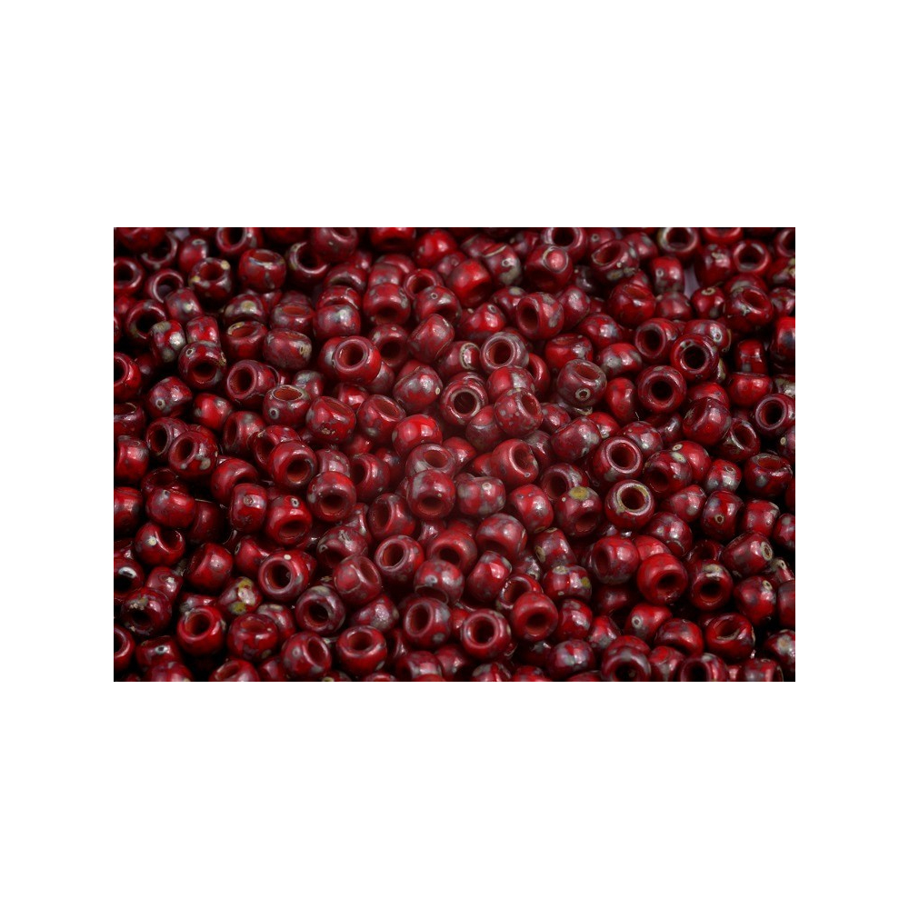 Matubo ROUND 7/0 OPAQUE CORAL RED TRAVERTIN DARK 93200/86805