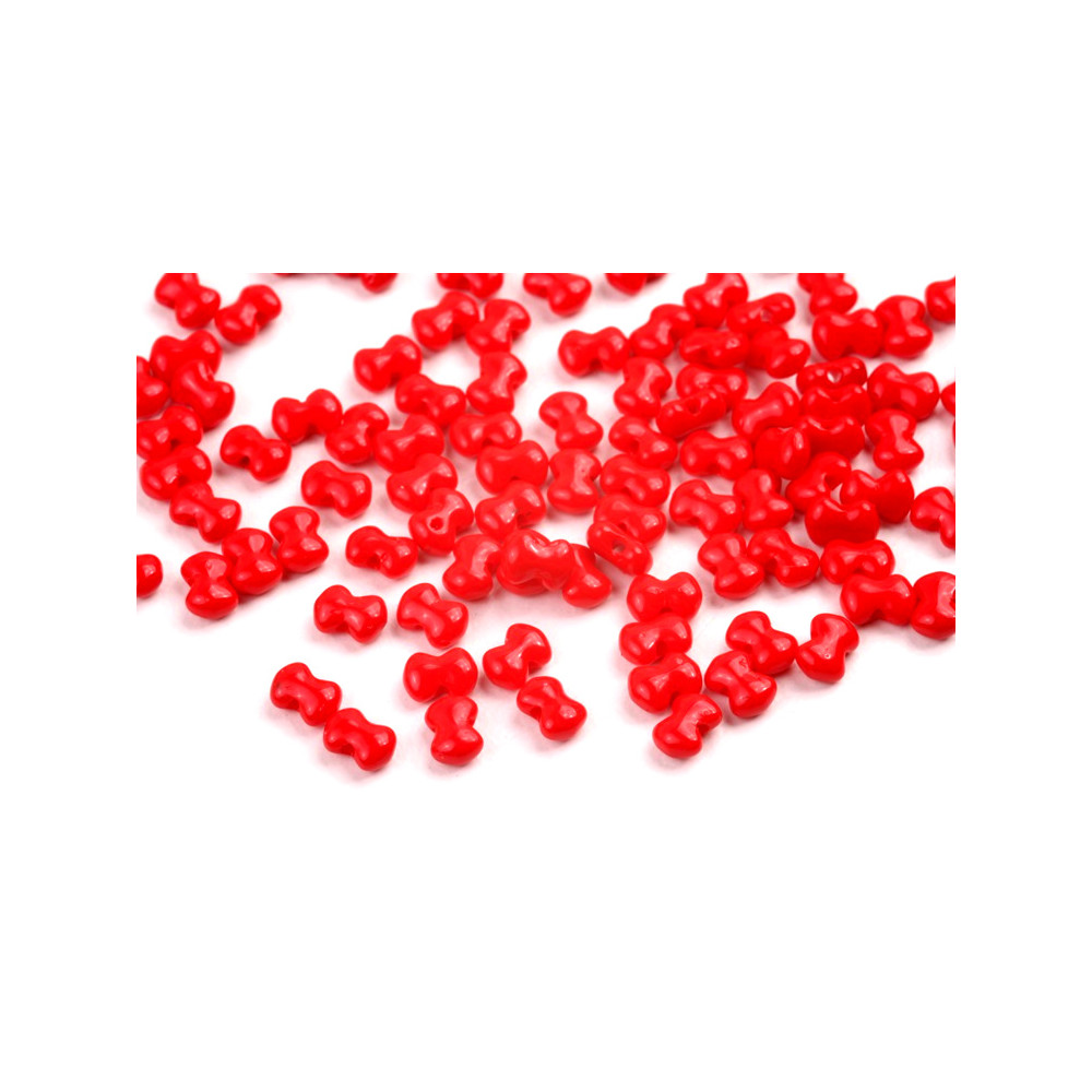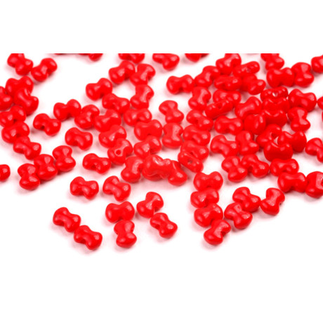 Červená barva v sytém neprůhledném odstínu dominuje těmto drobným prvkům. Matubo Butterfly o rozměru 3 x 4 mm přinášejí do světa bižuterie unikátní profil mašličky.