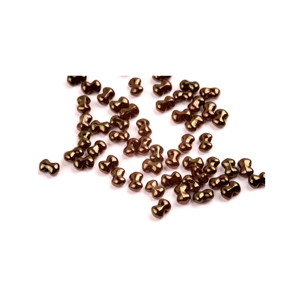 Bronzový metalický povrch dodává těmto korálkům Matubo Butterfly o rozměru 3 x 4 mm luxusní a nadčasový vzhled. Unikátní tvar motýlka se středovým zúžením umožňuje vytvářet v pletených vzorech zajímavé reliéfy a pevné zámkové spoje. Tyto skleněné korálky z českého skla vynikají tvarovou přesností, která je nezbytná pro náročné profesionální projekty.