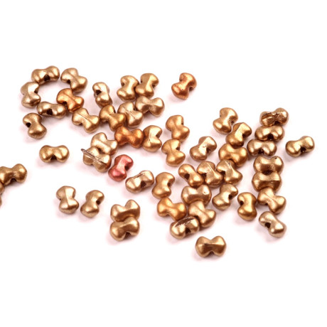 Bronzový kovový odlesk a precizní tvar charakterizují Matubo Butterfly 3 x 4 mm, které přinášejí do světa bižuterie unikátní geometrický prvek. Oproti klasickému rokajlu nabízí tento tvar specifické prohnutí uprostřed, díky čemuž do sebe jednotlivé kusy při šití perfektně zapadají a vytvářejí texturu připomínající jemnou krajku nebo motýlí křídla.